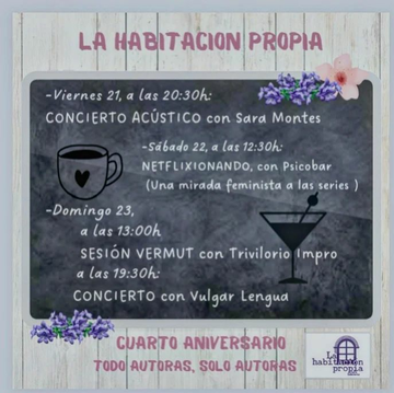 Bueno, pues aquí tenéis la programación que hemos preparado este fin de semana para celebrar nuestro cuarto aniversario. Como siempre, a última hora, no sea que por una vez podamos hacer las cosas sin estresarnos