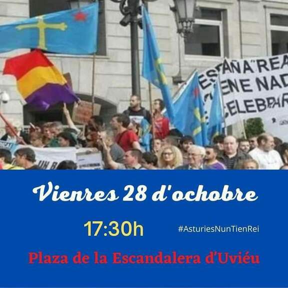 Diferentes organizaciones sociales y políticas volverán a manifestarse este viernes en la Plaza de La Escandalera coincidiendo con la visita a Oviedo/Uviéu de los Reyes y la Infanta Leonor. Bajo el nombre genérico de Asturies Nun Tien Rei, está convocada una concentración a las 17:30h para "recibir" a los monarcas de camino a la ceremonia de entrega de los Premios Princesa en el Teatro Campoamor.