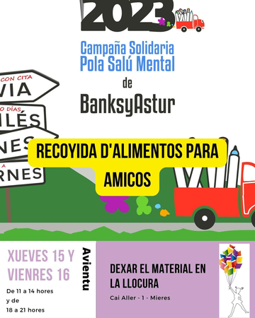 Preguntónos @banksyastur si queríemos collaborar coles sos acciones. ¿Cómo vamos deci-y que non? Podéis dexar equí alimentos pa l'asociación AMICOS (cocina solidaria de Mieres) mañana y el vienres, de 11 a 14 y de 18 a 21 hores