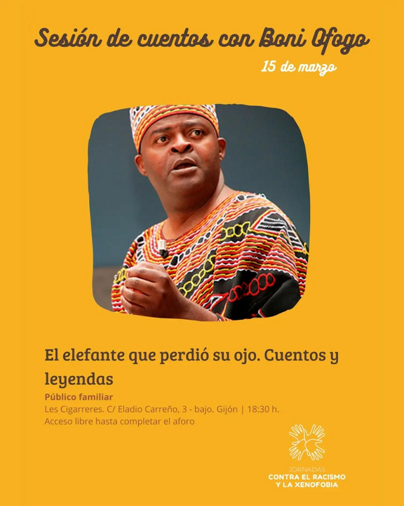 "Cuentos y leyendas de áfrica. El elefante que perdió su ojo" con Boni Ofogo