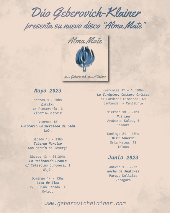 El dúo Geberovich-Klainer estará en nuestra habitación el sábado 13 de mayo, dentro de la gira de presentación de su nuevo disco "Alma Mate"
