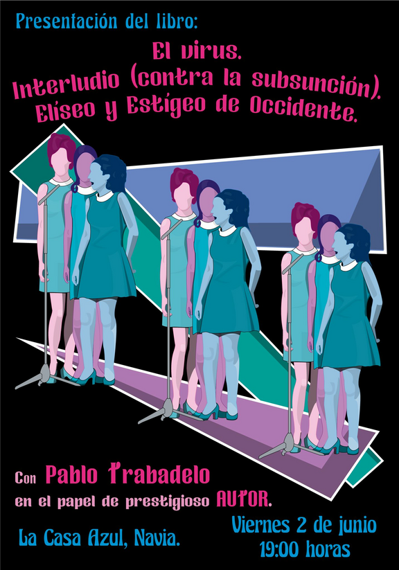 Saludos: De libro en libro y tiro porque vibro, buenas vibraciones desde luego, pues, el viernes 2 de junio, en nuestro local de Navia, presentamos el libro "El virus. Interludio (contra la subsunción). Elíseo y Estígeo de Occidente".