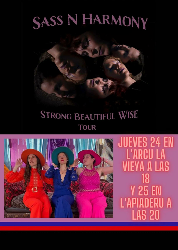 Atendéi, xira internacional de Sass N Harmony na capital y na comarca nos vuestros espacios de referencia n'Europa. Esto promete, nel L'arcu la Vieya y CSA L'Apiaderu
