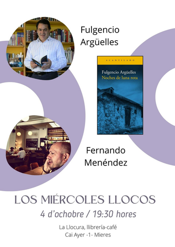 Nuestro taller de lectura y escritura creativa comienza su segunda temporada (sigue abierto el plazo de inscripción) y recibe al primero de sus autores, Fulgencio Argüelles, que vendrá a hablarnos de su obra "Noches de luna rota", editada por Acantilado.