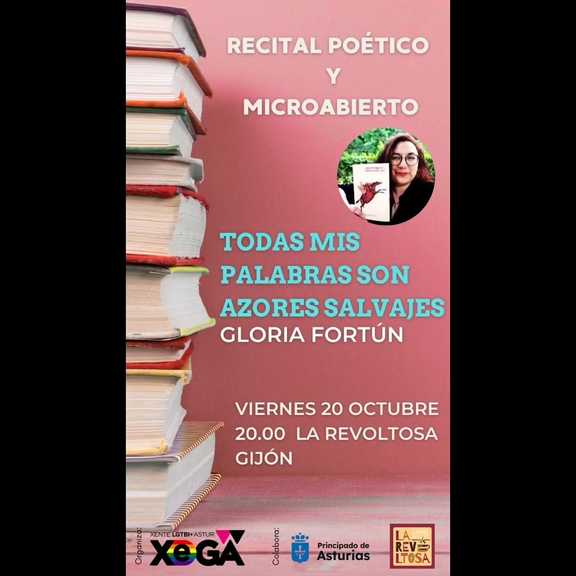De la mano de @xega.ast nos visita la escritora y activista Gloria Fortún. Aprovechando su estancia n'Asturies habrá ocasiones varias pa verla: el viernes estará en la Revol presentando su libro " Todas mis palabras son azores salvajes", con posterior recital y micro abierto; el sábado estará en @la_benefica_pilona presentando su libro Roja Catedral; y el domingo estará también en @lallocura en Mieres. No dejéis de pasar a verla, merece mucho la pena