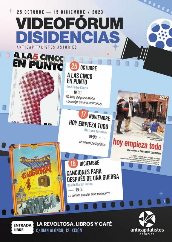 Organizamos en Xixón un ciclo de cine con conciencia en La Revoltosa. Los títulos con las fechas de las proyecciones son las siguientes: