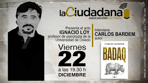 Carlos Bardem (Madrid, 1963) es actor y escritor. Licenciado en Historia y diplomado en Relaciones Internacionales, publicó su primer libro, "Durango perdido", en 1997. Su debut como novelista en 1999 le valió ser finalista del Premio Nada con "Muertes ejemplares". Sus últimas novelas, "Mongo Blanco" (2019) y "El asesino inconformista" (2021), ya presentada por La Ciudadana, Asociación Cultural, en El Manglar, fueron premiadas, respectivamente, con los Premios Espartaco a la Mejor Novela Histórica, y Dashiell Hammett de novela negra en la Semana Negra de Gijón.