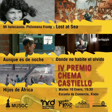Mañana martes, 16 de enero, a las 19:30 horas, en el Salón de Actos de la Escuela de Comercio (Cl Francisco Tomás y Valiente, 1), dentro de la programación de MUSOC (Muestra de Cine Social y Derechos Humanos de Asturies), se dará a conocer el IV Premio Chema Castiello.