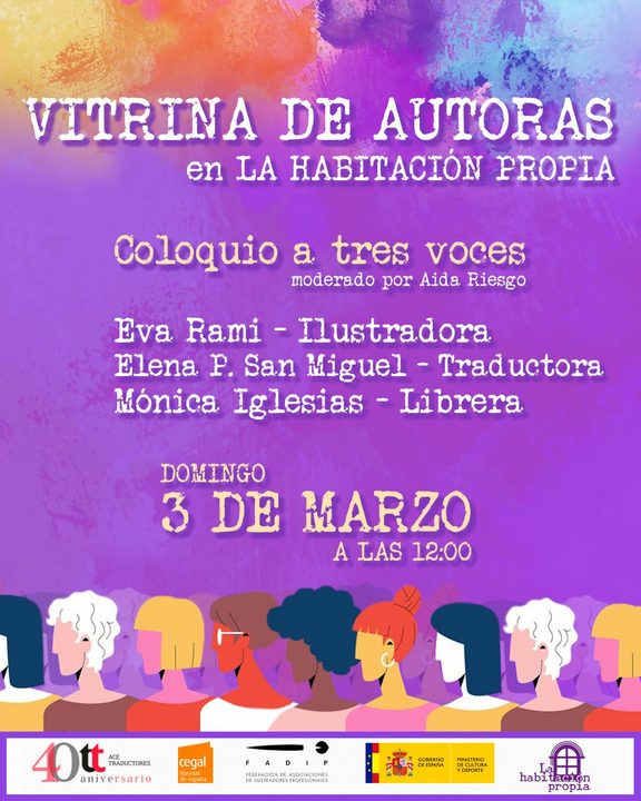 Estamos encantadas con que distintas entidades del sector librero hayan decidido organizar una iniciativa coordinada a nivel estatal para visibilizar el trabajo de las mujeres del libro. Y felices de que, junto con la ilustradora Eva Rami y la traductora Elena P. San Miguel, nuestra librería haya sido elegida para llevar adelante dicha iniciativa. El resultado de esta colaboración lo veréis muy pronto plasmado en el escaparate de nuestra habitación. Y para charlar sobre las rosas y las espinas de nuestras respectivas profesiones, de lo que significa también ser mujer en el sector librero, estáis invitadas a este coloquio que moderará Aída Riesgo, coordinadora del club de lectura de La Habitación Propia.