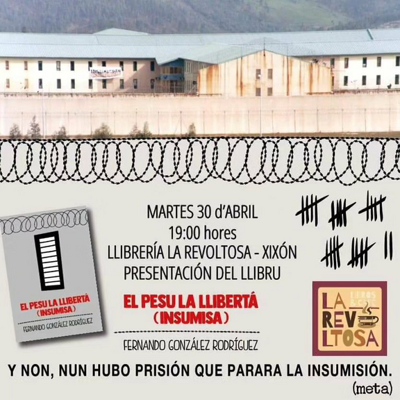 Mañana presentase l'ultimu llibru de Fernando González, Fer, "El pesu la llibertá (insumisa)".
