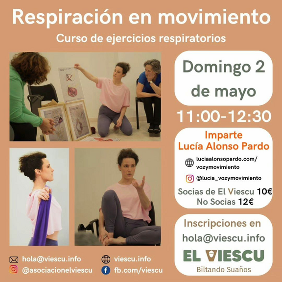 Empezamos con los talleres de junio. El domingo día 2, Lucia Alonso Pardo @lucia_vozymovimiento impartirá el curso de Respiración y Movimiento