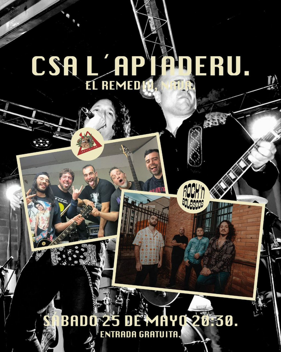 Y a otru día camudamos de punk a rock y esti sábadu 25 vamos tener a los Rock'n Bolescos e Involución en conciertu a partir de les 20:30h. Ahí nos vemos