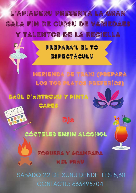 Anque inda queda tiempu para la gala de variedaes vámosvos yá avisando por que vos animéis a participar y ponese en contactu para inscribir el to espectáculu. Nun lo podéis perder!!!