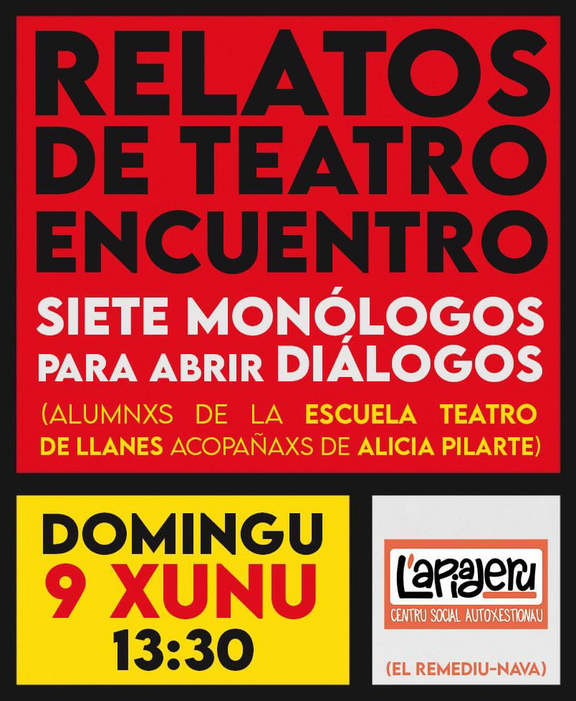Esti domingu 9 de xunu acabamos la selmana con teatru, na menos que 7 monólogos pa abrir diálogos. Oxalá vos preste!