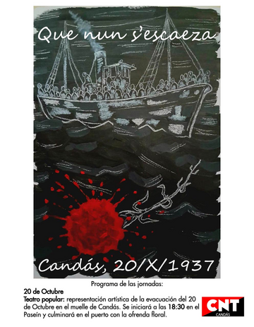 Para todas las personas que quisieran "actuar" en la recreación de la "evacuación", la Casa del Pueblo de la CNT de Candás permanecerá abierta, a partir de las 16 horas del sábado 19 y el domingo 20 para distribuir "atrezzo" y planificar el acto.
