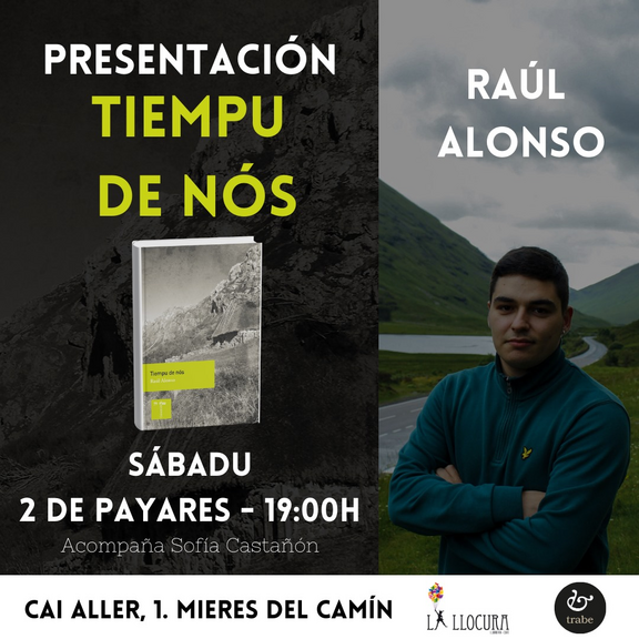 Esti sábadu vien Raúl Alonso a presentar Tiempu de nós, el llibru editáu por Trabe col que ganó'l Premiu Asturias Joven de Poesía 2023. Va tar acompañáu pola escritora Sofía Castañón.