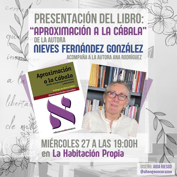 El miércoles 27 de noviembre presentamos un libro muy singular. Aproximación a la cábala desde una perspectiva laica y feminista. Su autora Nieves Fernández estará acompañada en este acto por Ana Rodriguez.