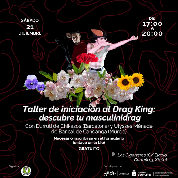 Y la última actividad de la programación de otoño del espacio de apoyo mutuo LGTBIQ+ es...este Taller de iniciación al Drag King: descubre tu maculinidrag