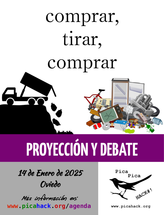 Martes 14 de enero de 2025 a las siete (19:00 h): Proyección y debate del documental "Comprar, tirar, comprar".