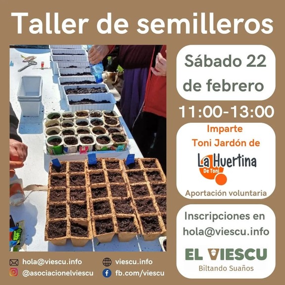 🥁 Próximo Taller: Taller de semilleros, que será impartido por Toni Jardón de @huertinadetoni en la parcela de El Viescu el sábado 22 de febrero.