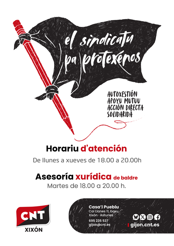 La CNT de Xixón ofrece una asesoría laboral para todos los trabajadores (afiliados o no)