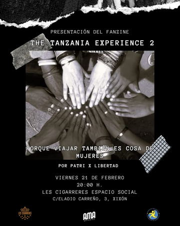 El viernes 21 de febrero a las 20:00h en Les Cigarreres Espacio Social* (C/ Eladio Carreño, 3, Xixón) tendremos la presentación del fanzine solidario "THE TANZANIA EXPERIENCE". Porque viajar también es cosa de mujeres" de Patri X Libertad.