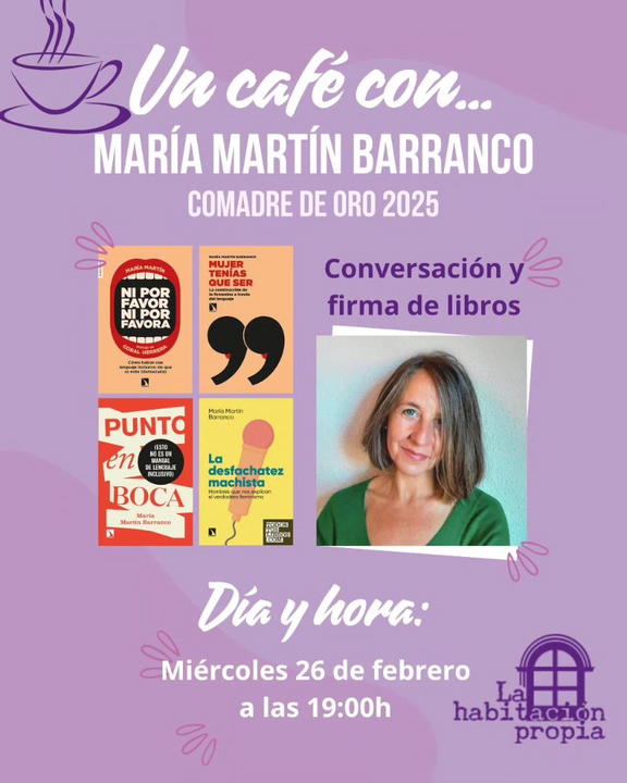 Este miércoles tendremos con nosotras a María Martín Barranco, feminista, licenciada en derecho y flamante Comadre de Oro 2025. María Martín es autora de varios libros sobre el sexismo en el lenguaje y el uso del mismo con perspectiva de género. Su ultimo libro es La desfachatez machista. Hombres que nos explican el verdadero feminismo.