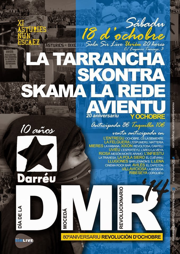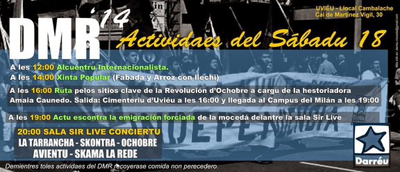 Dende la Mocedá d'Izquierda Soberanista nun podíemos quedar ensin facer reivindicación y alcordanza de la revolución d'ochobre de 1934 nel so 80 aniversariu, polo qu'esti 17 y 18 d'ochobre Darréu entama delles actividaes que componen el Día de la Mocedá Revolucionario 2014, esta vegada n'Uviéu.