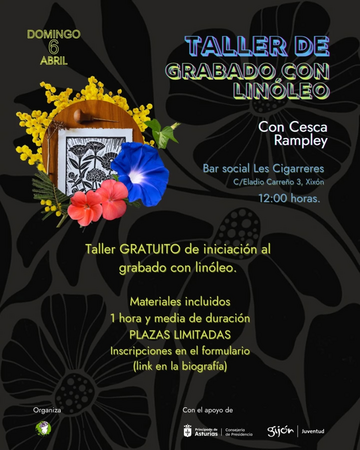 Empezaremos la jornada con un taller de grabado con linóleo con Cesca Rampley (os podéis apuntar en el link de la bio)