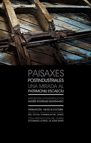 El fotógrafu y historiador asturianu Andrés Rodríguez Monteavaro (Bual, 1991) presenta la so primer esposición en formatu físicu, que lleva por títulu Paisaxes postindustriales. Una mirada al patrimonio escaecíu, na sala polivalente del Local Cambalache, d'Uvieo, el próximo xueves 30 d'octubre a les 20:00 hores, tres d'estrenase va tres meses nel Centru Sociocultural de Les Vegues, Corvera.