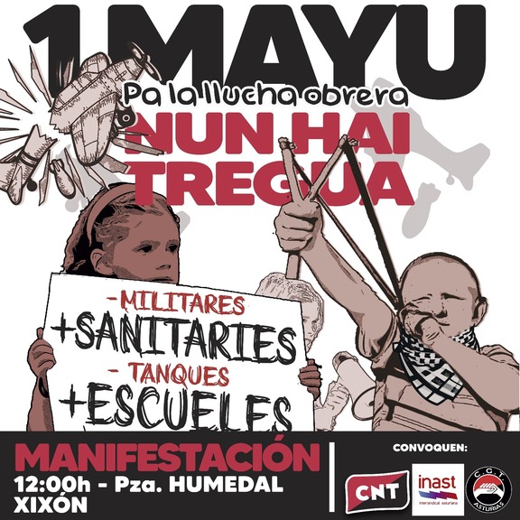 Pa la llucha obrera nunca hai tregua, que 'l trabayu nun nos afuegue na vida ni nos la arrebate