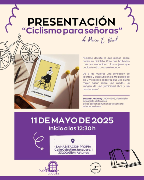 El próximo domingo 11 a las 12.30h vamos a hablar de Ciclismo para señoras, de Maria y de sus amigas en nuestra habitación, poniendo sobre la mesa el poder simbólico del ciclismo, las transformaciones sociales que trajo consigo, y el valor de recuperar voces como la de Ward más de un siglo después.