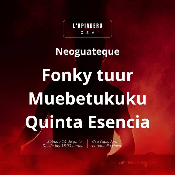 Esti Sábadu 14 de Xunu a partir de les 18h tenemos nel Apiaderu unos rapazos que vienen a deleitanos con unes sesiones musicales muy prestoses. Vamos a organizar un Neoguateque pa que nun apare la folixa. Vémonos esti sábadu.