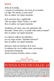 Ya son cincuenta los carteles de Poesía a pie de calle que llevamos compartiendo desde hace cuatro años. El proyecto lo inició la asociación granadina La Zagüía, a la que nos sumamos desde el año 2013 otros colectivos amigos (la librería madrileña La Casquería, la librería Bakakai de Granada, La Fuga librerías de Sevilla, la editorial Libros de la Herida, el colectivo de agitación cultural La Palabra Itinerante y Cambalache), colaborando en la edición de un cartel mensual con un poema. Recitaremos algunos de estos poemas para clausurar la X Feria del Libr