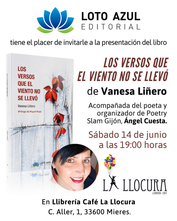 El sábadu visítanos Vane Liñero col so poemariu Los versos que el viento no se llevó, editáu por Loto Azul y prologáu por Miguel Rojo. L'autora va tar acompañada pol poeta Ángel Cuesta.