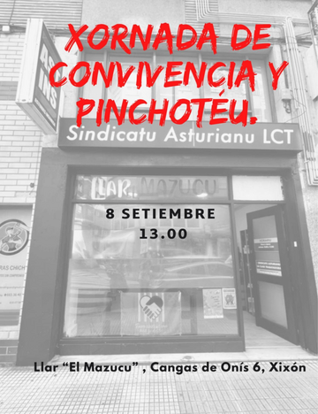 LUNES 8 DE SEPTIEMBRE. 13:00 h. LLAR EL MAZUCU (C/ Cangues d'Onís 6). XIXÓN.