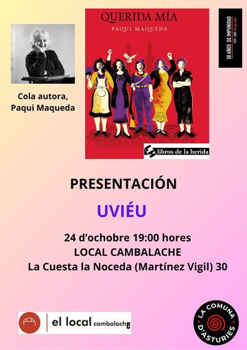 El viernes 24 de octubre, a las 19h Presentación del libro Querida mía [Libros de la Herida, 2025]. Con Paquita Maqueda (autora)