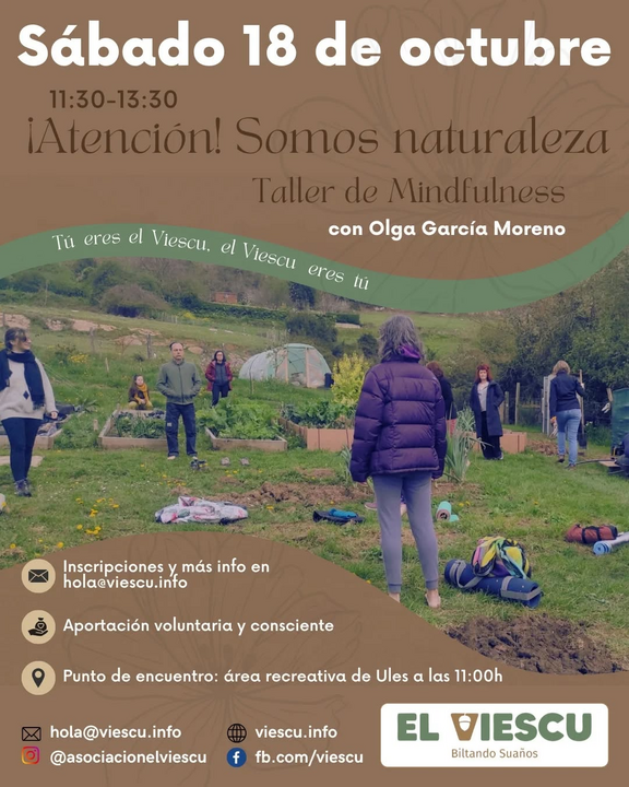 El sábado 18 tenemos un nuevo taller de Mindfulness en El Viescu.