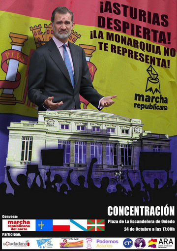 Desde Marcha republicana del Norte, hacemos un llamamiento a toda la ciudadanía a la concentración que tendrá lugar el próximo viernes 24 de octubre a las 17 horas en la Plaza de la Escandalera en Oviedo.