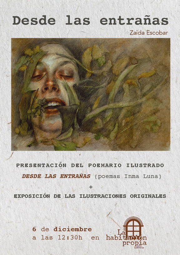 El próximo sábado, 6 de diciembre os invitamos a compartir un vermut con nosotras ppara conocer la obra de la ilustradora Zaida Escobar, a traves del poemario de Inma Luna, Desde las entrañas.