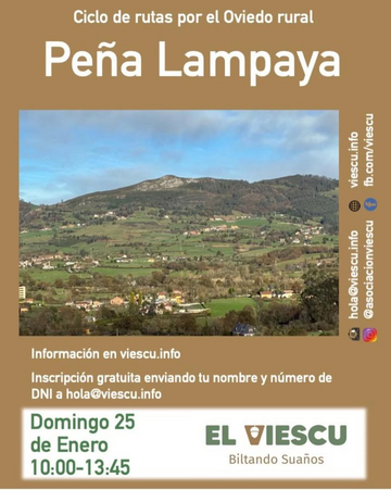 Si el tiempo lo permite, para la primera salida por el Oviedo rural de 2026 volvemos los ojos a nuestra maravillosa Sierra del Naranco. El domingo 25 de enero, de 10:00 a 13:45h subiremos por detrás del Centro Asturiano al Altu de la Rasa/La Contriz, rodearemos el Cantu Caleyines y llegaremos a la cima de Peña Lampaya, desde donde podremos disfrutar de unas vistas aún más guapas si cabe que las del Picu'l Paisanu. Volveremos por los pueblos de El Llano y Ules y pasaremos junto a la parcela de El Viescu antes de finalizar la salida. Son 9.9 km fáciles, aunque, como os podéis imaginar, hay cuestas.