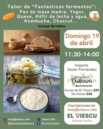 Taller de "Fantásticos fermentos":Pan de masa madre,yogur, queso,kéfir...