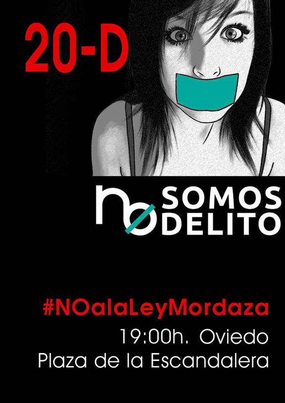 Concentración contra la ley mordaza aprobada por el gobierno fascistoide del PP. Te esperamos el sábado 20 de diciembre a las 19hrs en la Plaza de la Escandalera en Oviedo. ¡No faltes! Súmate al clamor para romper las mordazas que nos intentan imponer. #NoSomosDelito