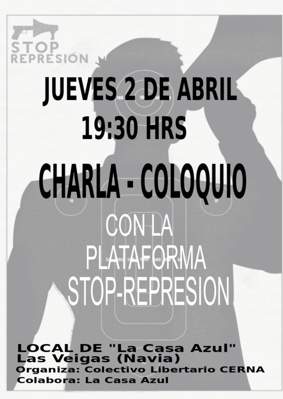 El Jueves 2 de Abril, miembros de la Plataforma Stop Represión de Logroño estarán con nosotros en Navia.