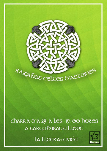 El vienres 29 de mayu la organización xuvenil Darréu entama nel Llar La Llegra (Cai El Postigu Baxu, 40 - Uviéu) de magar les 19:00 hores la charra "Raigaños celtes d'Asturies".