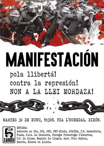 CONVOCA: ASTURIES EN PIE (CSI, CGT, CNT-Xixón, SUATEA, FUSOA, CENTRO SOCIAL AUTOGESTIONADO LA SEMIENTE, PARAD@S Y PRECARI@S DE ASTURIES, CENTRO SOCIAL SESTAFERIA, ASOCIACIÓN PICU RABICU, CENTRO SOCIAL LA LLUME, ESPACIO LA LLEGRA, DARRÉU, MIERES EN LLUCHA).