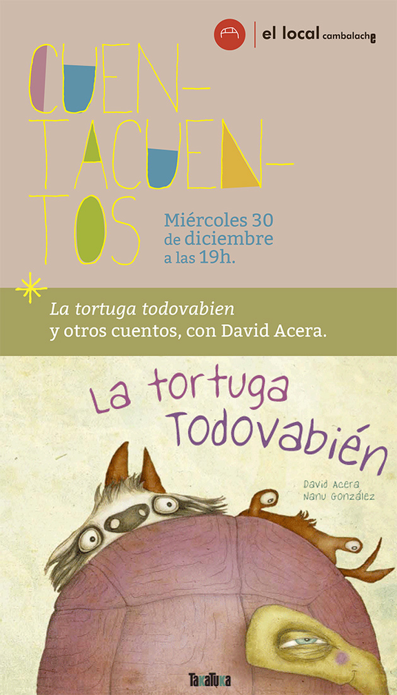 El miércoles 30 de diciembre a las 19h. Cuentacuentos: La tortuga todovabien y otros cuentos. Con David Acera.