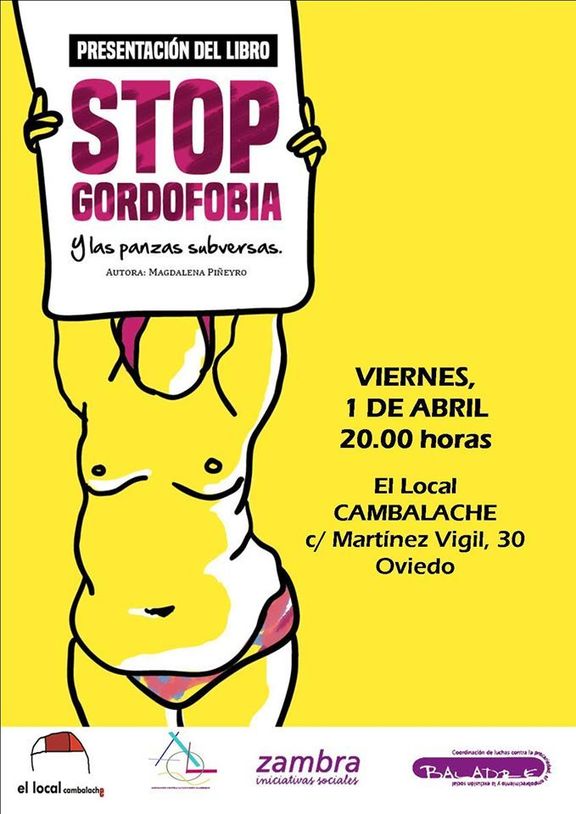 El viernes 1 de abril a las 20h Presentación del libro: Stop gordofobia y las panzas subversas, a cargo de su autora Magdalena Piñeyro.