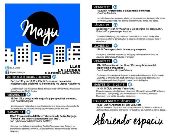 El mes de mayu ye de gran importancia pa la llingua asturiana, cola Selmana de les Lletres desendolcándose. Ye por ello que nel Llar La Llegra entamamos pa esti mes un ciclu de cine n'asturianu en distintes vertientes: