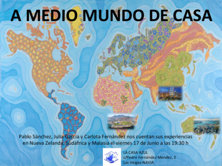 El próximo viernes 17 a las 19:30 de la tarde Carlota Fernández, Pablo Sánchez y Julia García (alumn@s del Instituto Galileo Galilei de Navia) compartirán con todxs nosotrxs sus experiencias en Malasia, Nueva Zelanda y Sudáfrica el pashado verano.
